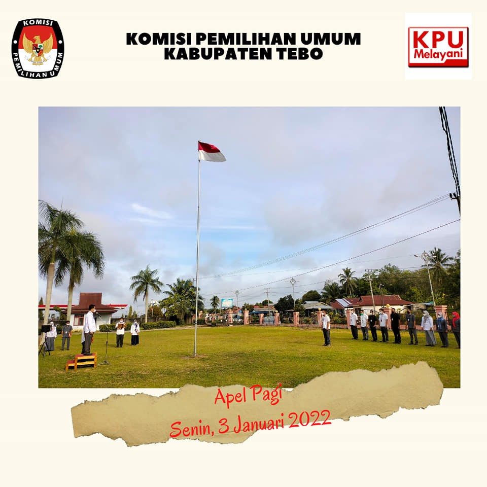 Melakukan Apel Rutin Pagi pada pukul 07:30 WIB dalam mewujudkan Kedisiplinan Pegawai Sekretariat KPU Kabupaten Tebo, Pejabat Pengambil Apel Aleka Saputra, S.Sos selaku Plt Kasubbag Teknis Penyelenggara, partisipasi dan Hubungan Masyarakat..