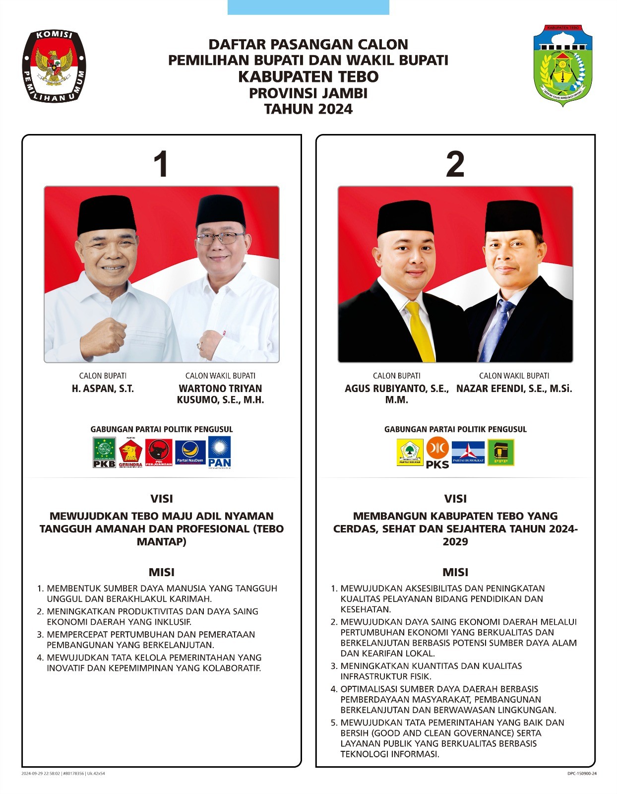 PENGUMUMAN DAFTAR PASANGAN CALON BUPATI DAN WAKIL BUPATI KABUPATEN TEBO TAHUN 2024