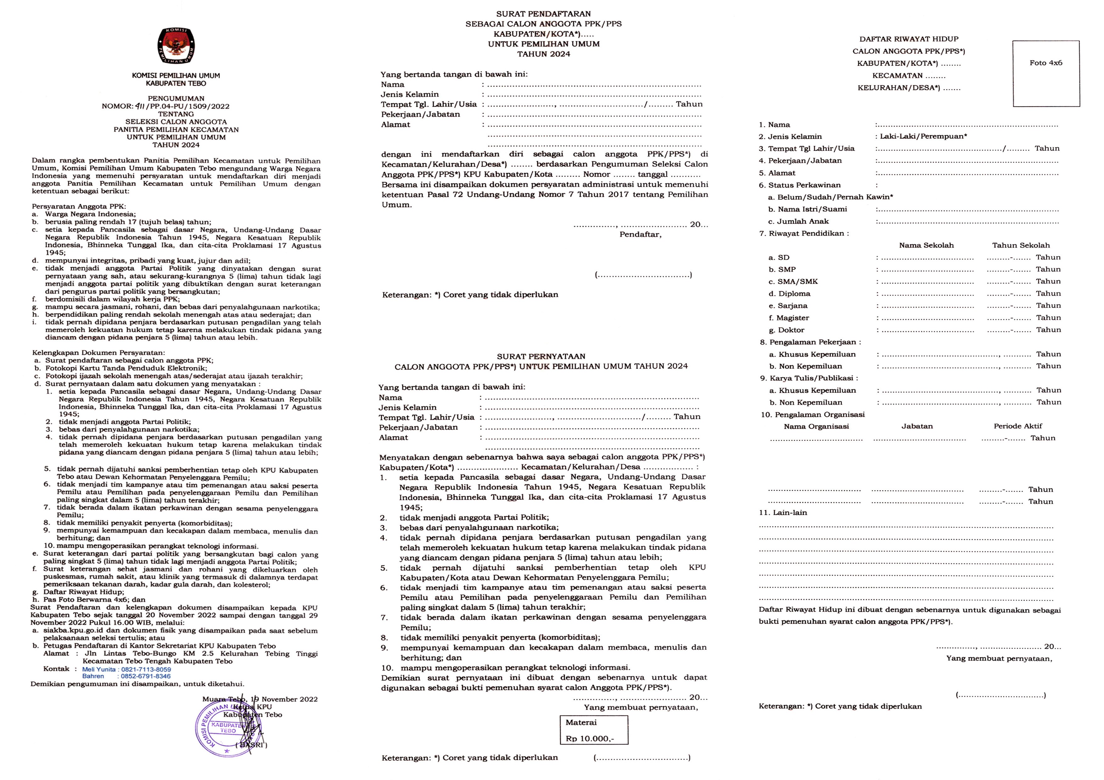 pengumuman pendaftaran calon anggota PPK Tanggal 20 s/d 24 November 2022
