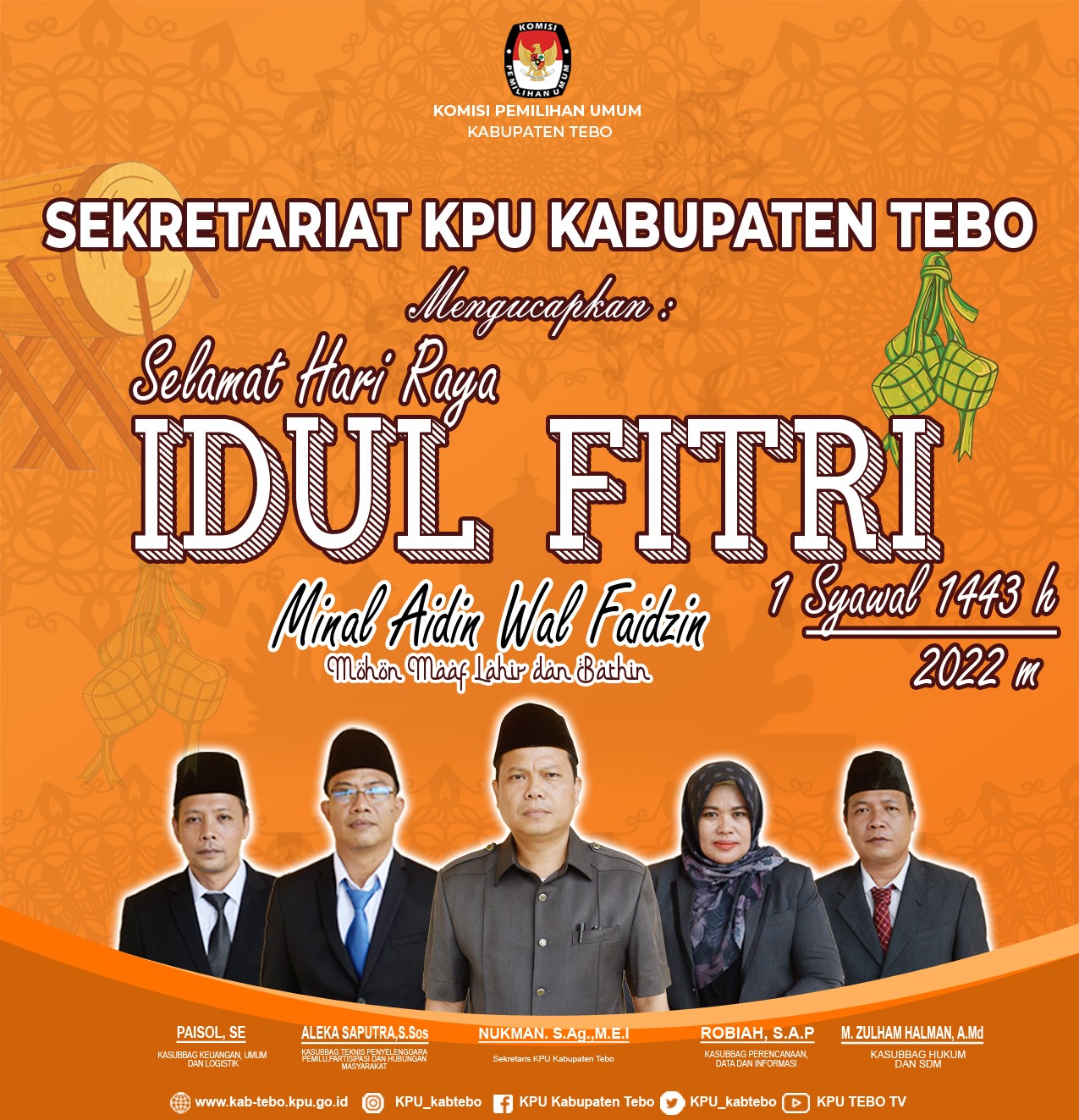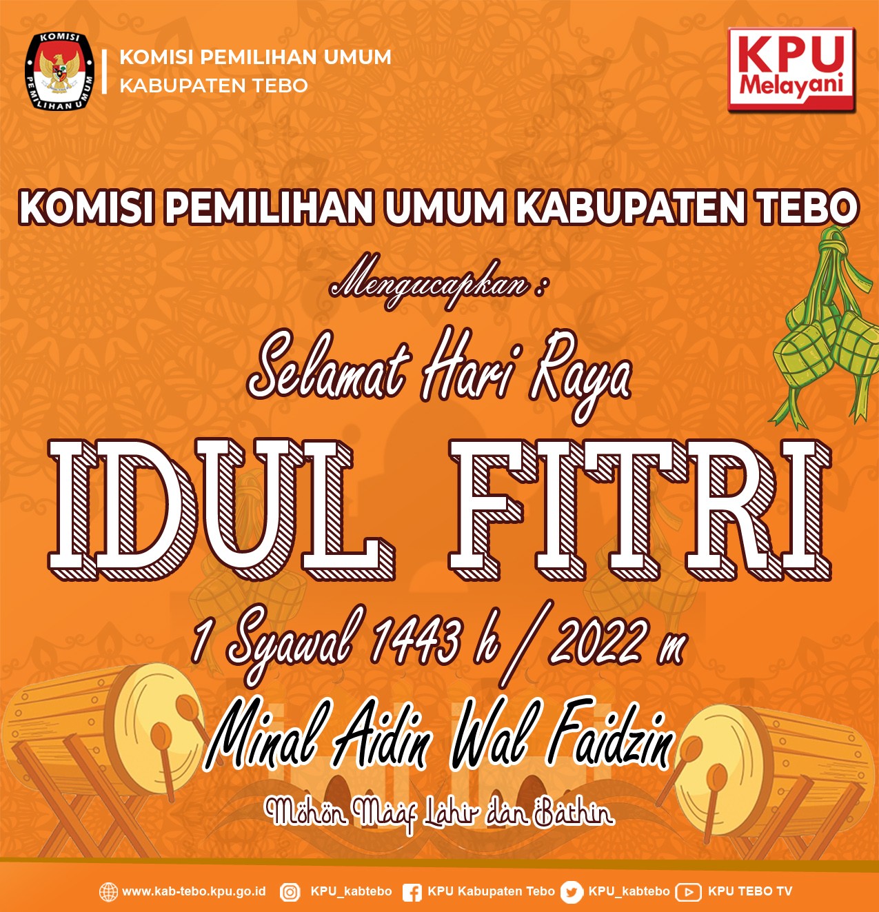 Komisi Pemilihan Umum Kabupaten Tebo Mengucapkan Selamat Hari Raya Idul Fitri 1 Syawal 1443 H.