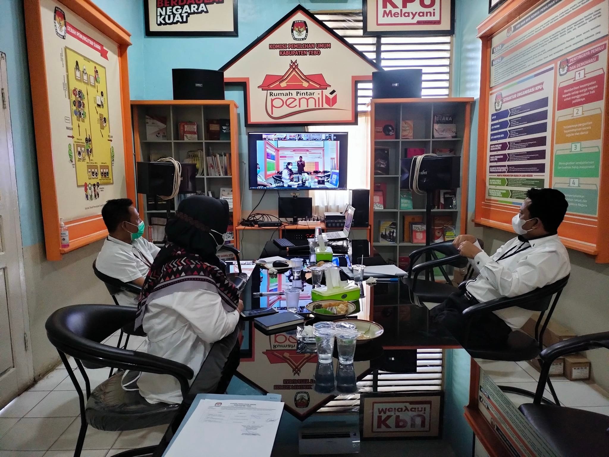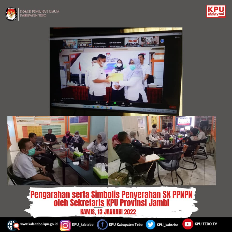 Plh Sekretaris KPU Kabupaten Tebo Paisol, SE beserta seluruh Kasubbag dan PPNPN KPU Kabupaten Tebo mengikuti Pengarahan serta Simbolis Penyerahan SK PPNPN oleh Sekretaris KPU Provinsi Jambi H. Khoirul Bahri Lubis, S.Sos